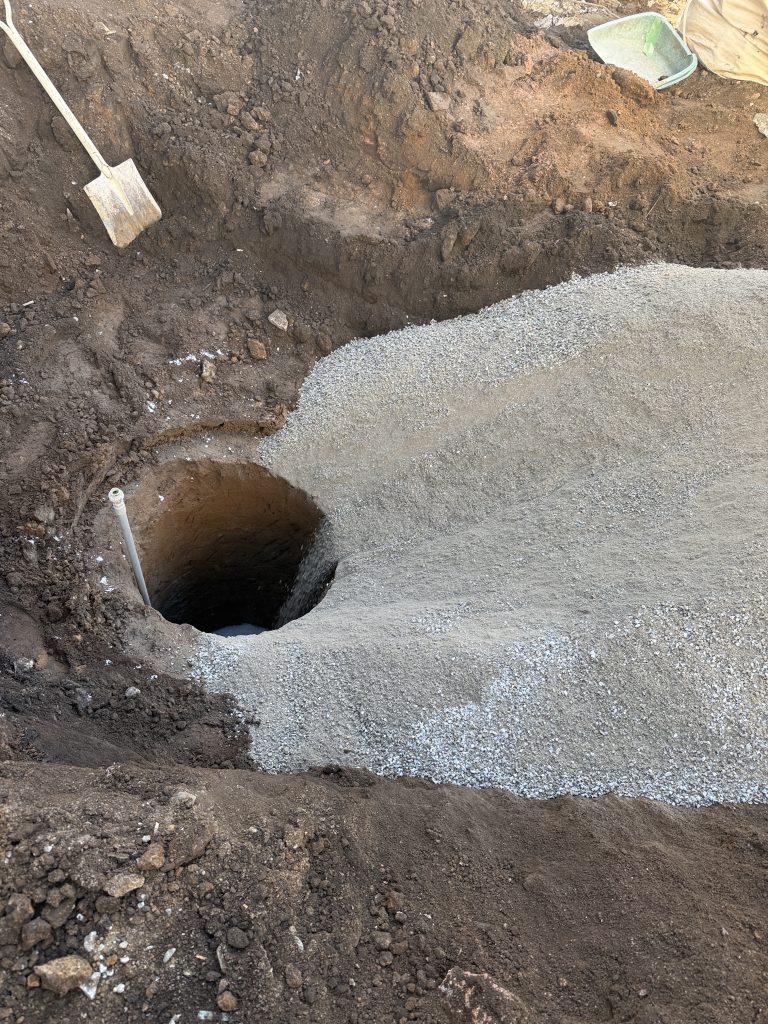 施主さんの了解を得て、砂埋めにしました。